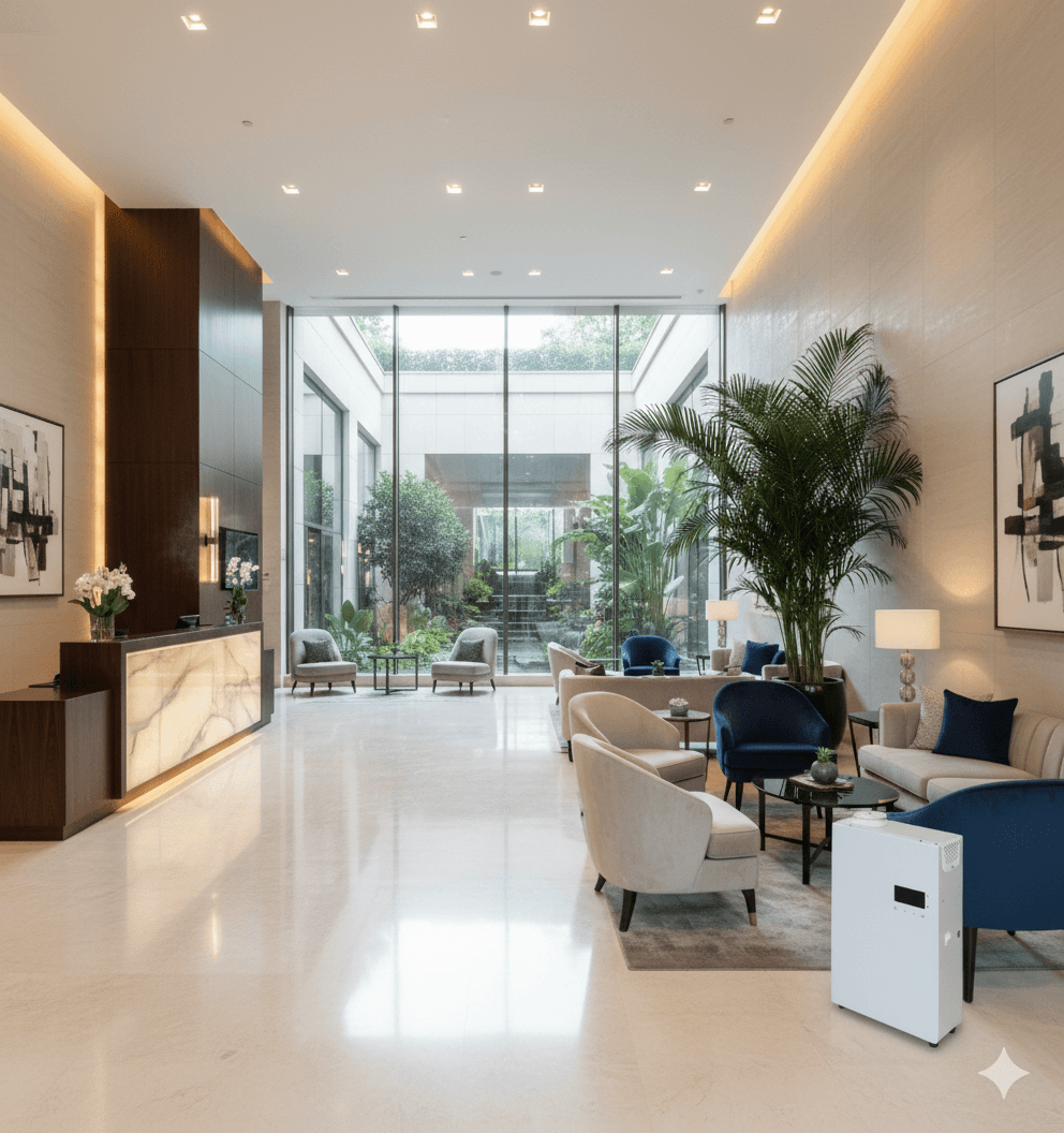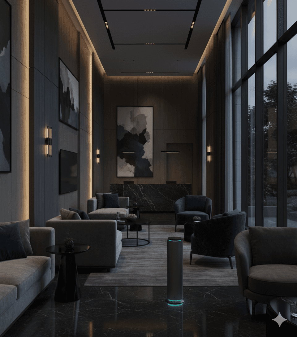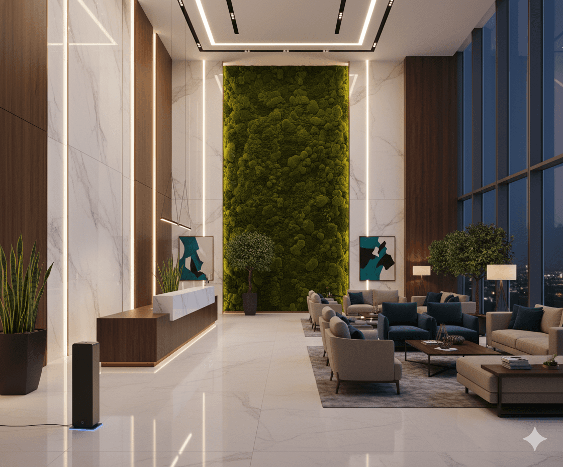 Technology integration across your spaces using waterless diffusion and IoT controls. Installation typically takes 2–4 weeks depending on scale and complexity.